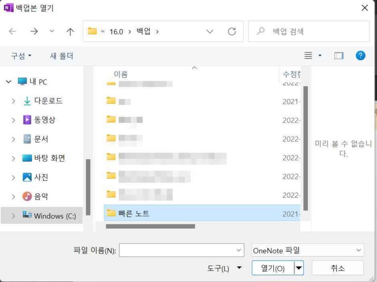 1. 원노트 삭제한 노트 복구-백업 파일