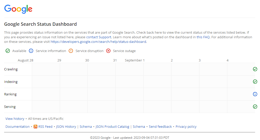 구글이 2023년 8월 Google Search Status Dashboard(구글 검색 상태 대시보드) 업데이트를 발표 했습니다.